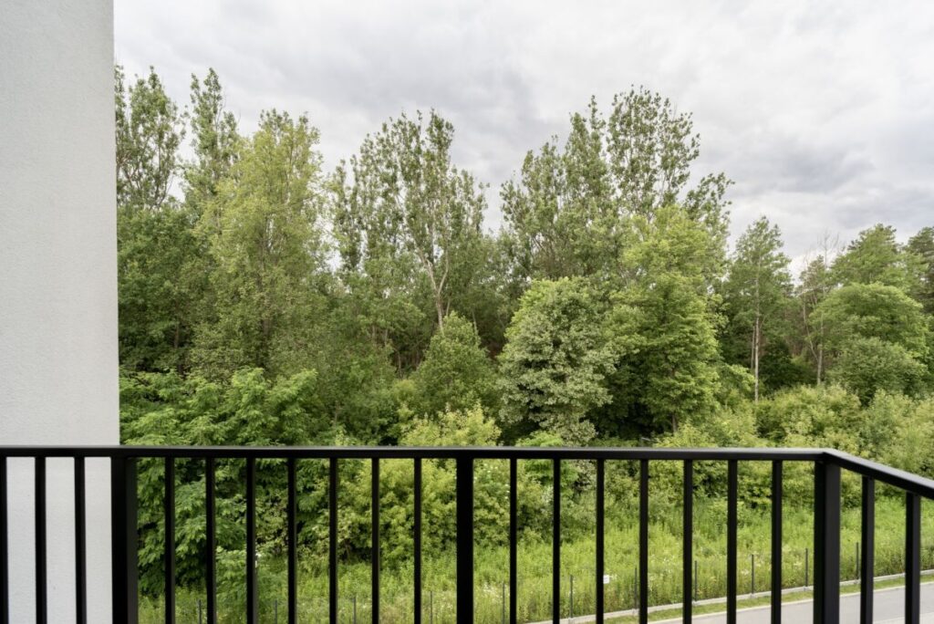 Mieszkanie znajduje się na trzecim piętrze w nowoczesnym budynku z 2022 roku. Usytuowanie budynku oraz ekspozycja okien na Zachód zapewniają rzadko spotykany widok na korony drzew pobliskiego lasu.